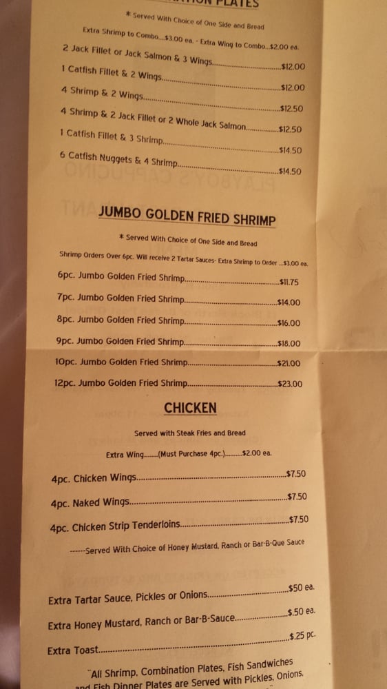Playboy El Cappuccino offers a variety of combination plates, jumbo golden fried shrimp, and chicken wings in a casual and lively atmosphere. Located in Saint Louis, MO, this American lounge is known for its delicious seafood options like shrimp and fish. Customers rave about the quality of the food, with favorites including the tripe sandwich and the catfish and shrimp combo. While some reviewers mention the venue's shabby appearance and occasional lack of friendliness from staff, the flavorful dishes and generous portions make up for it. Overall, Playboy El Cappuccino is a hidden gem for those looking for a unique dining experience with strong drinks and fried specialties.